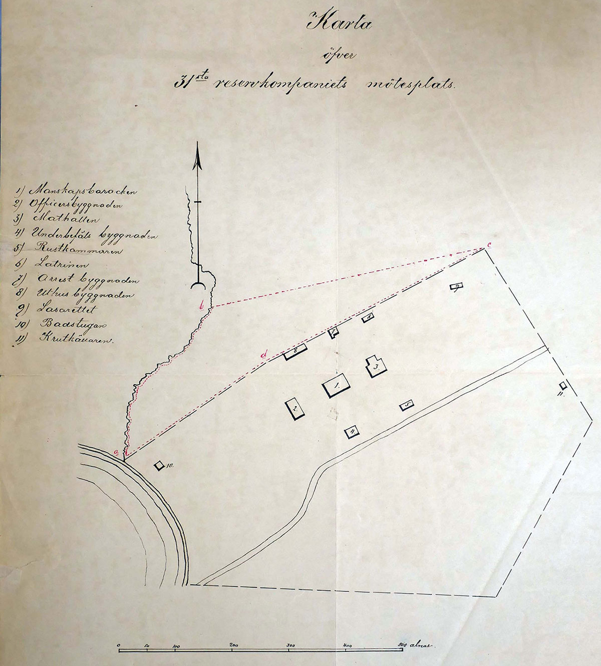 Lähteitä mm. Kansalliskirjaston digitaaliset sanoma- ja aikakauslehtiaineistot sekä Kansallisarkisto, Helsinki: Arkisto: Sotilaskartat (kokoelma), Sarja: 1656213861 Ia*/1 Ruotsin vallan aikaiset sotilaskartat, Arkistoyksikkö: Sotilaskartta Ia* 264/- -_11 l. Karta öfver 31:sta reservkompaniets mötesplats; Arkisto: Mallipiirustusten arkisto, Sarja: 2332688034 Mallipiirustukset, Arkistoyksikkö: 430 Sotilaskasarmi 290 miehelle ja 8 aliupseerille, reservijoukkojen majoitukset xx.xx.1887-xx.xx.1887